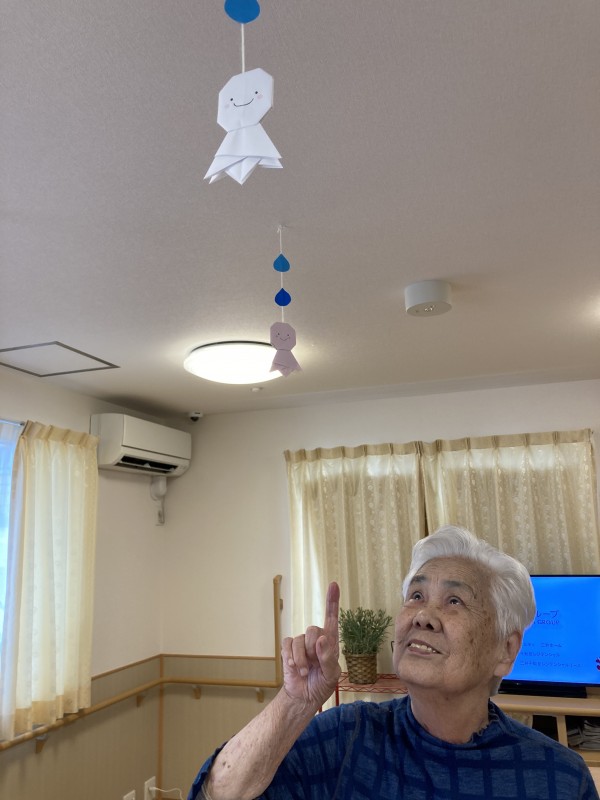 天井にもてるてる坊主が飾ってあります!
