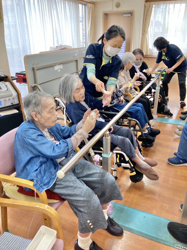 せっかくなので、平行棒で行いました。合間に少しずつ運動を挟んで行いました。