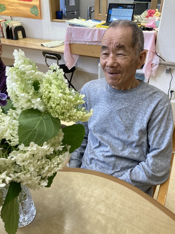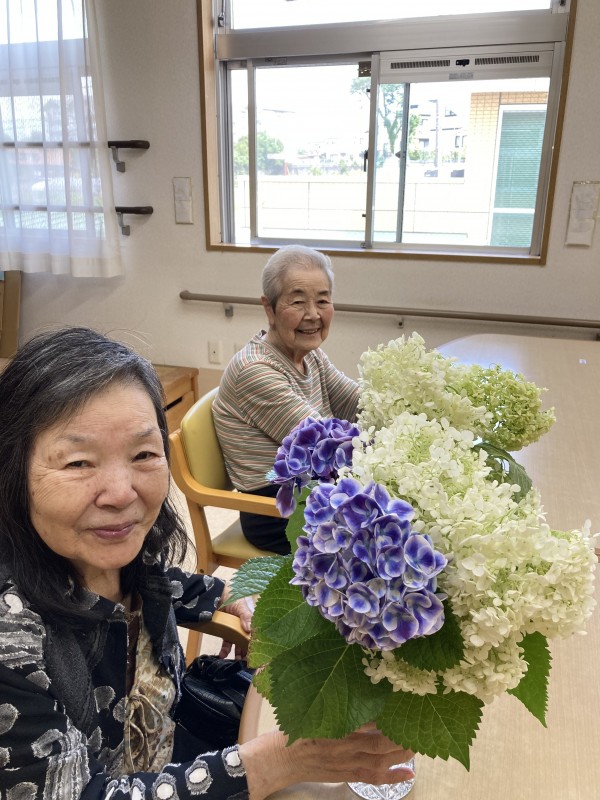 紫陽花に優しく 話しかけておられる利用者様、、、