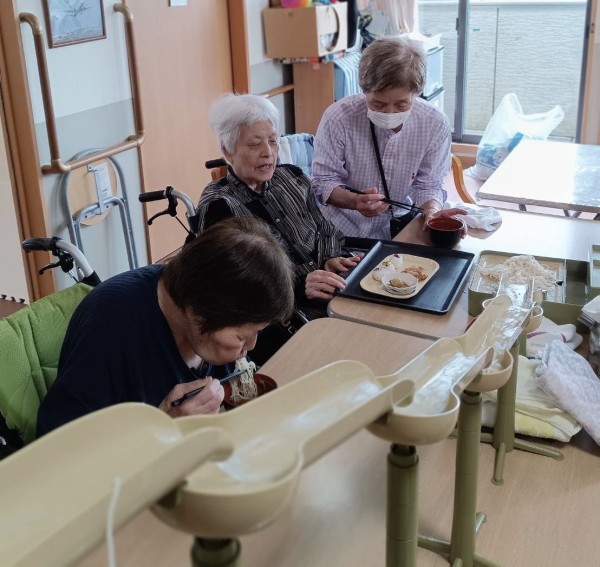 今回のイベントは「流しそうめん」をご家族様も飛び入りで参加して頂いて行いました♬