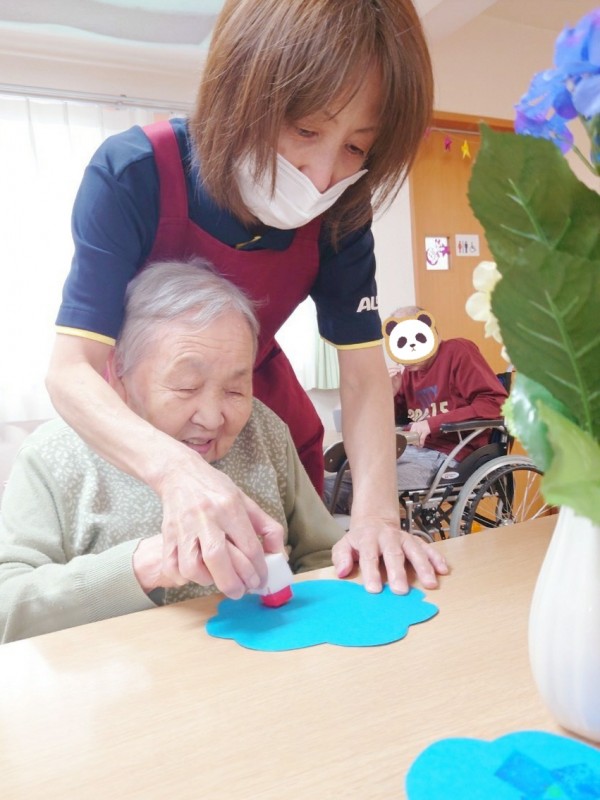 6月のレク担当のF職員が月レクで作ったかたつむりを付け足してくれました!