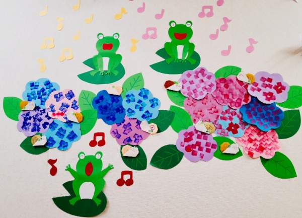 グループホームみんなの家大宮三橋 ケロケロケロ♪2階6月の壁飾り♪