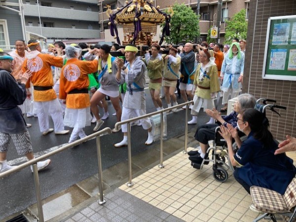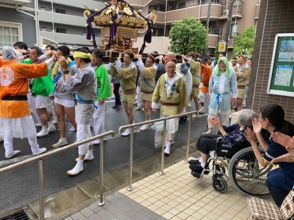 今日、6月11日は地域の「隅田稲荷神社」の例大祭でお神輿が復活して施設の前を通って下さいました!