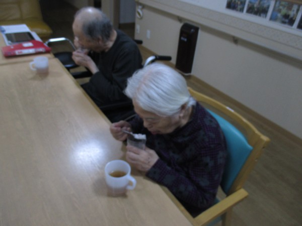 おやつには、二色ゼリーを作り、召し上がっていただきました。