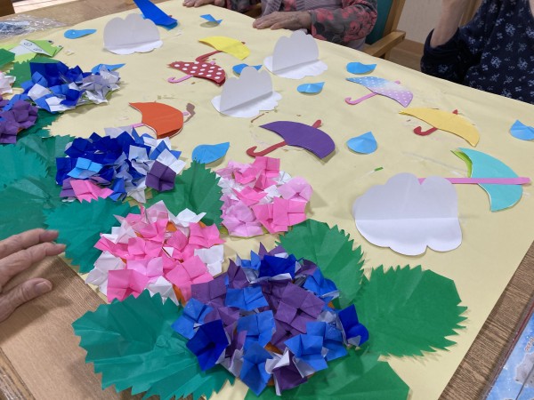 壁飾りもアジサイと傘にかわりました。