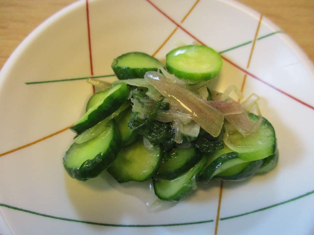 キュウリは1本食べごろだったので、デイサービスセンター遊・志木中宗岡でなった大葉とみょうがを浅漬けの素であえて、ご利用者様へ召し上がっていただきました(●^o^●)