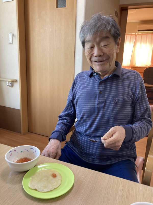今日のおやつは職員がクレープを焼き、