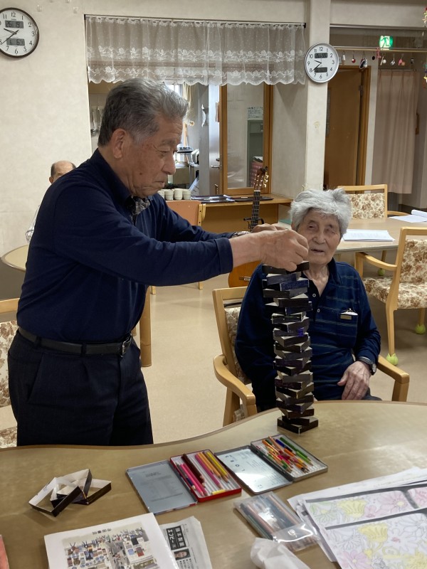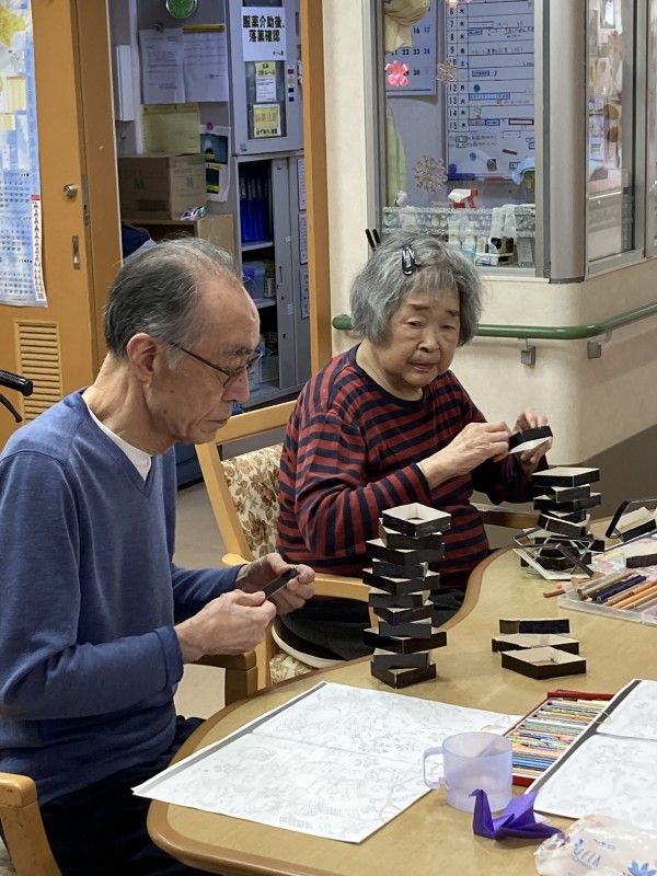こんにちは!ここさいたま市西区清河寺にあるグループホームみんなの家清河寺です!!!(^^)! 今回は、牛乳パックで作った積み重ねゲームに夢中です!(^^)!誰が一番高く積み重ねられるかな~(*^^)v!(^^)!毎日必ずと言ってもいいくらい、皆さんが夢中になって競争しています!(^^)!作り方は簡単('◇')ゞ牛乳パックを2センチ幅にカットして、好きな色を塗るだけ!(^^)!です('◇')ゞ