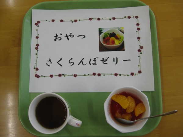 今日のおやつはさくらんぼゼリーです( ^ω^)・・・
