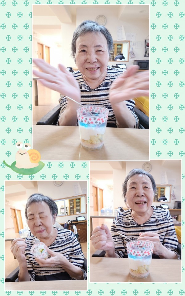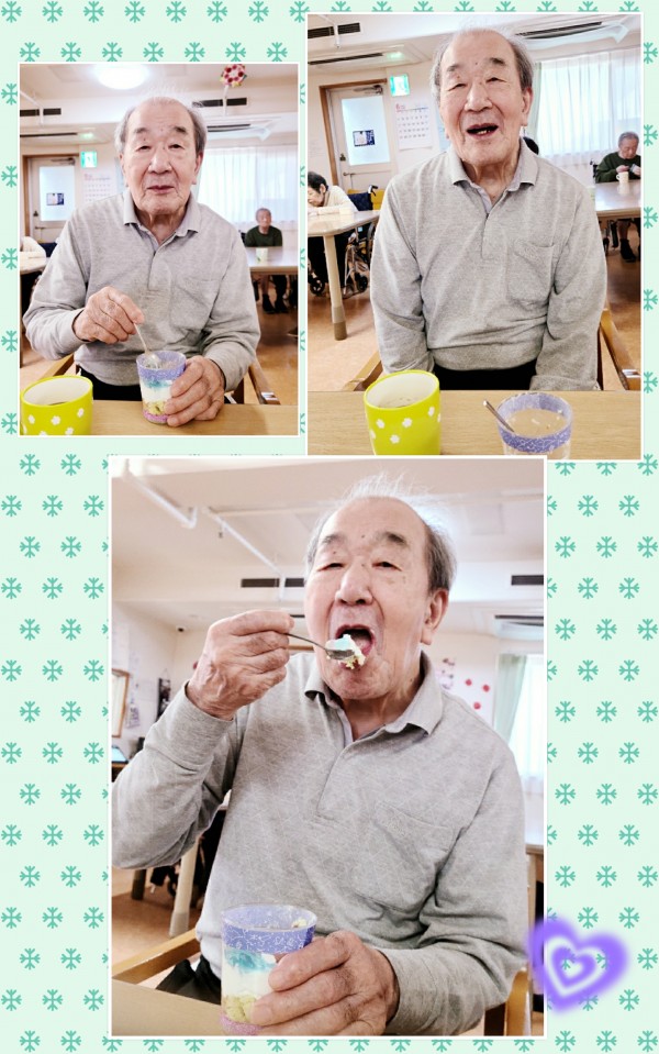 「パフェを作ってみたので試食して評価して頂いてもいいですか?」とホーム長が声をかけると