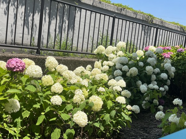 西尾久には、ベランダの西尾久ガーデンだけじゃなく、ホームの周りに花が咲きます。