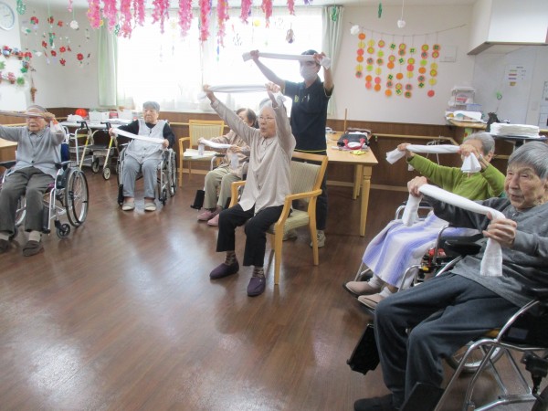 2・3・4階同時開催の運動教室で、職員も含めて36人の方が参加できました。