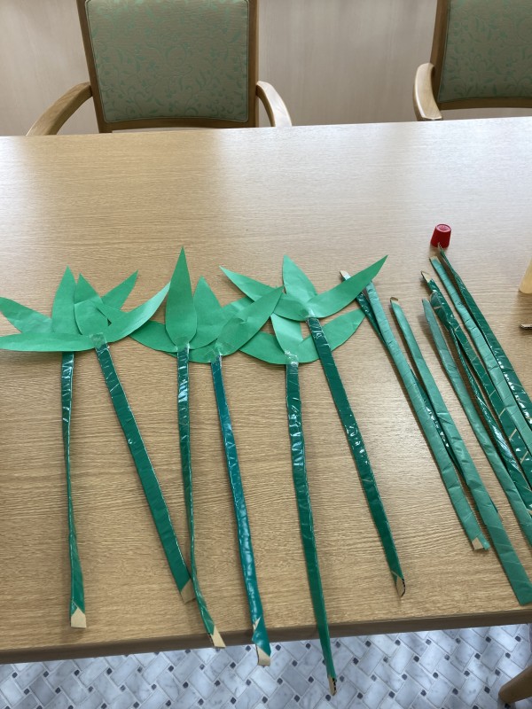 2Uでは今年はトイレットペーパーの芯と折り紙などを使った七夕の笹の葉作りに挑戦中です!