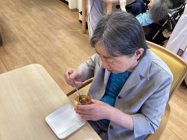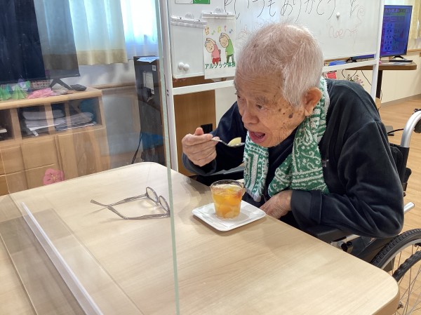 おやつに職員お手製のフルーツポンチサイダーをお出しして召し上がりました。