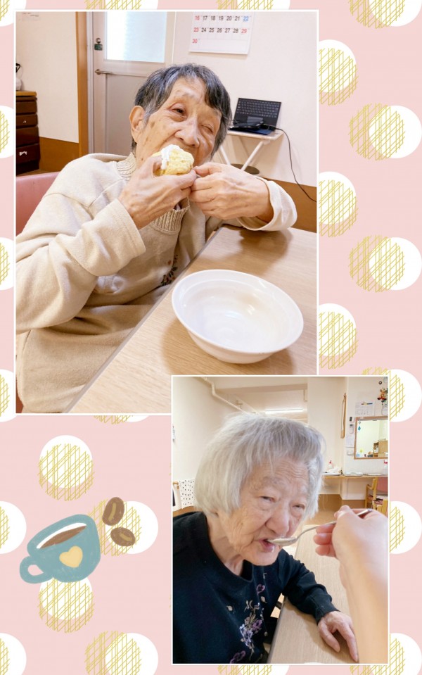 美味しい手作りおやつで笑顔になったご利用者様たち。