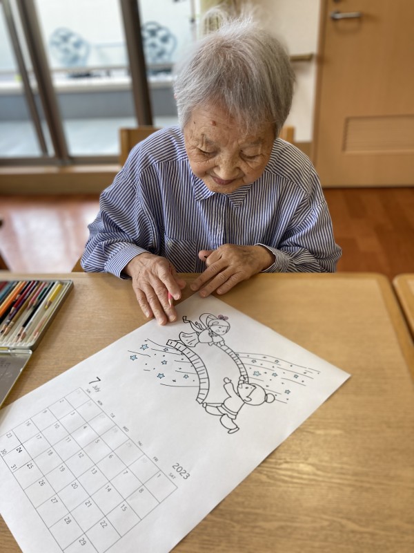 今日のレクリエーション活動では7月のカレンダー作りをしました(´ω`*)