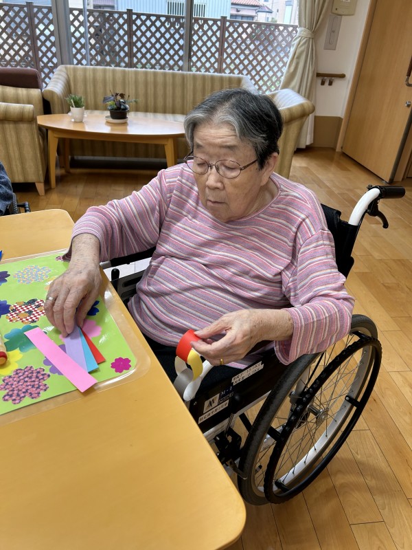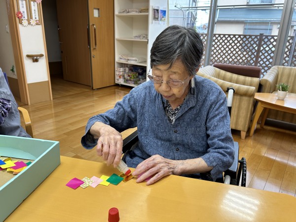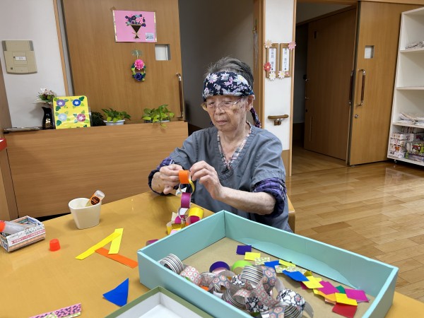 七夕飾りを皆さんと一緒に作成中