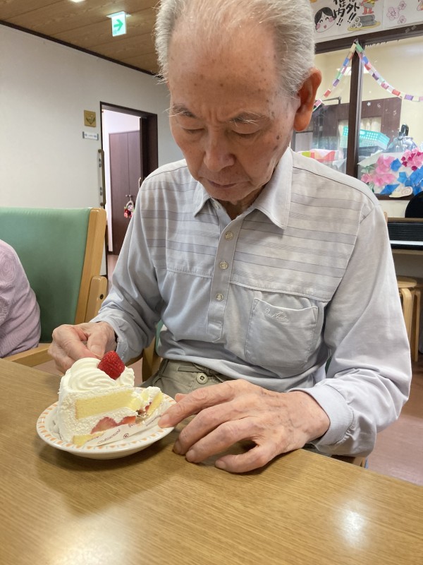 誕生日会では久しぶりにケ-キを提供したのですが入居者様は大喜びです