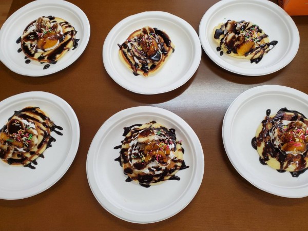 バナナを切って、チョコレートでデコレーションをしたりして…( *´艸`)