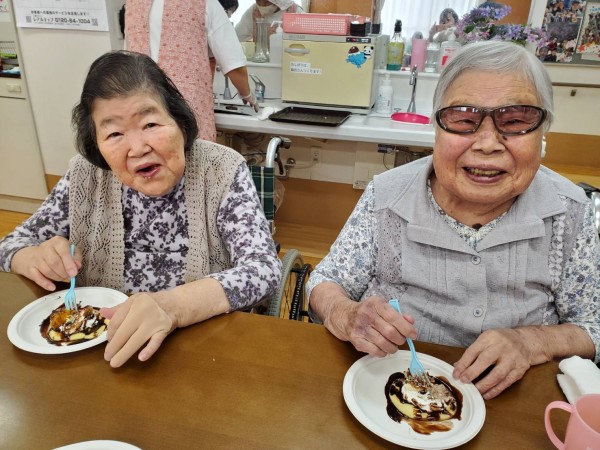 おやつレクを行いまして、皆さんと一緒にホットケーキを作りました(^^♪