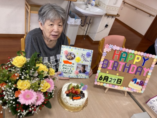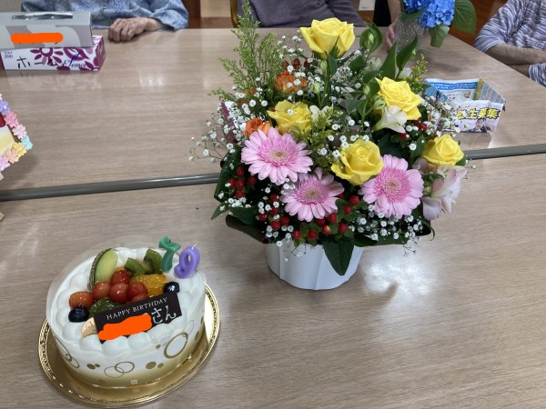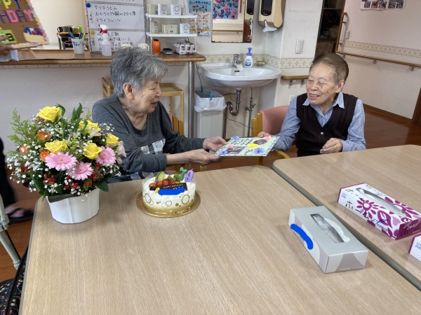 他の利用者様と職員にもお祝いの言葉をもらい照れ笑いされてました(^^♪