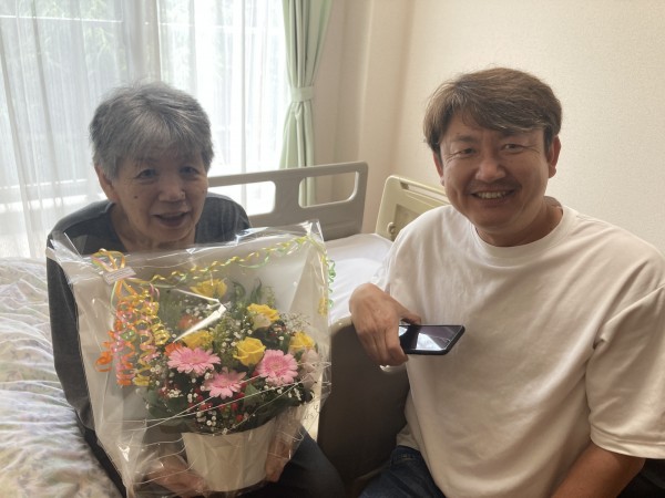 ご家族様が豪華なケーキと花をプレゼントに持ってきてくださいました。