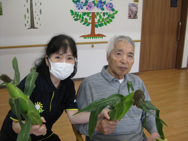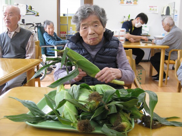 こんにちは! グループホームみんなの家・あきがせの介護ブログです! よろしくお願いいたします。 今日はご家族様からとうもろこしのお届け物がありました。そのご様子をお知らせいたします!