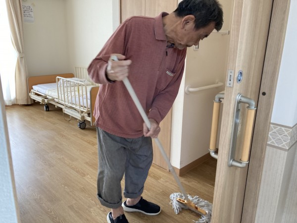 朝食後は、食器拭き、モップかけのお手伝いをお願いしています。