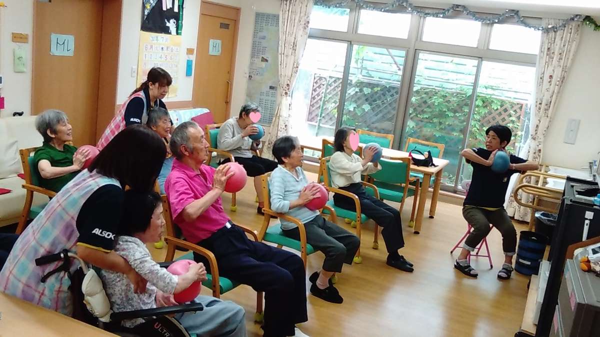 みなさんこんにちは小規模多機能みんなの家・稲城長沼です!今日も、とても暑い一日でしたね...外での活動を避け室内でボール体操を行いました!職員と一緒に100~1まで逆から数えながら上半身・下半身の運動!その後ごぼう先生のDVDを見ながら全身運動頑張りましたよ~(^O^)/運動の後のおやつ美味しかったですね♪