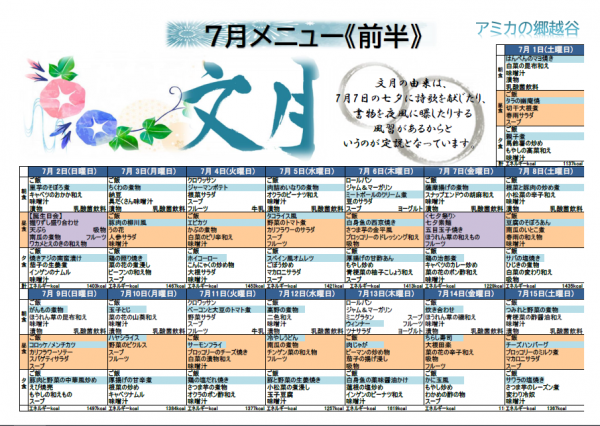 7月の献立表