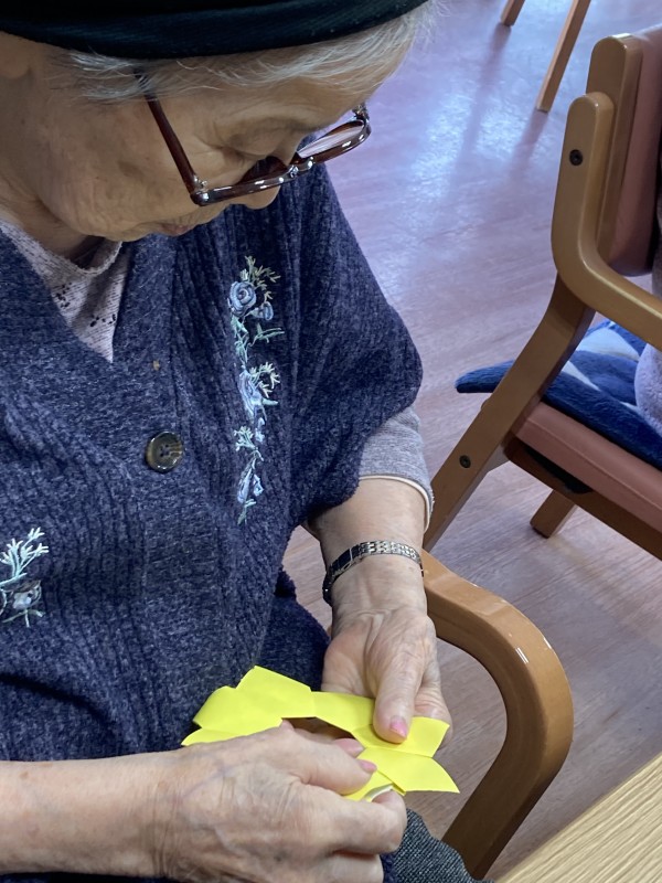 折り紙で花びらを折り