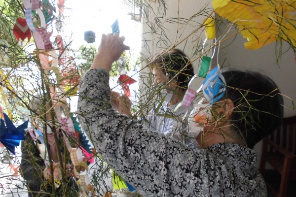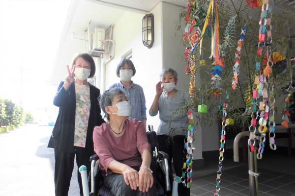 今回は正面玄関前に七夕飾りを飾っていきます!