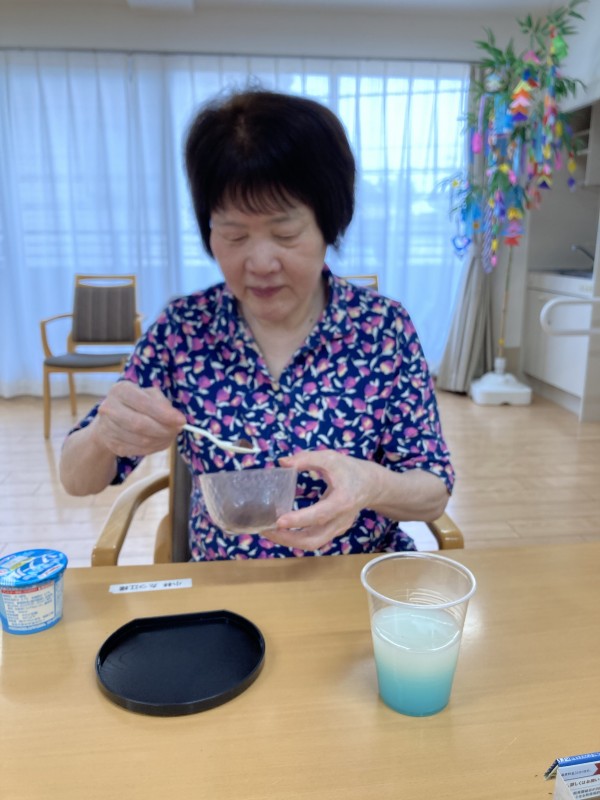 ★☆七夕手作りおやつ作りレクリエーション「水ようかん」②階記念撮影2023年(^^✨