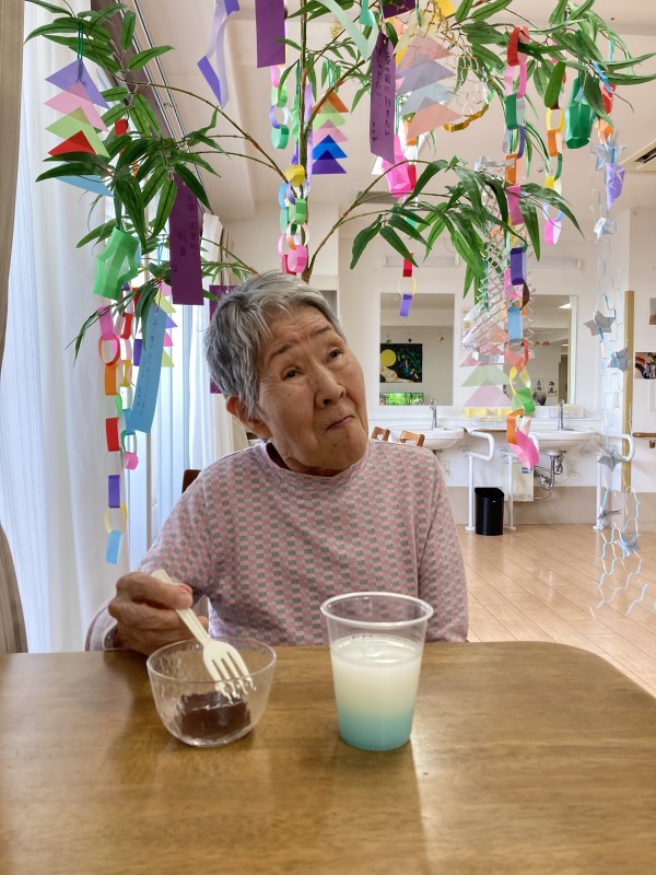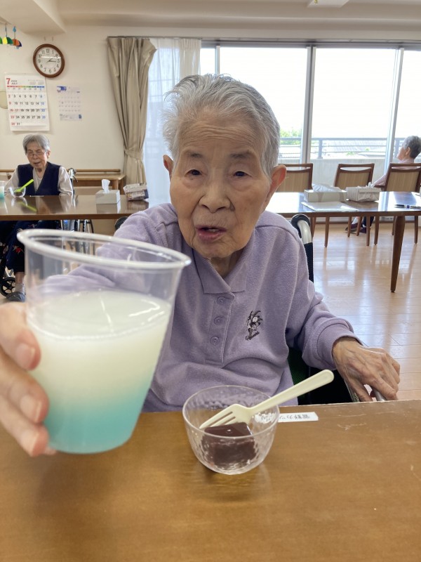 ★☆七夕手作りおやつ作りレクリエーション「水ようかん」③階記念撮影2023年(^^✨