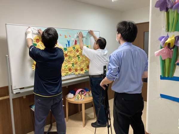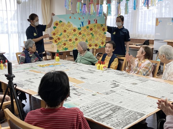 季節を感じ楽しみながら手や指の機能訓練をする、壁画や吊るし飾り制作の様子や