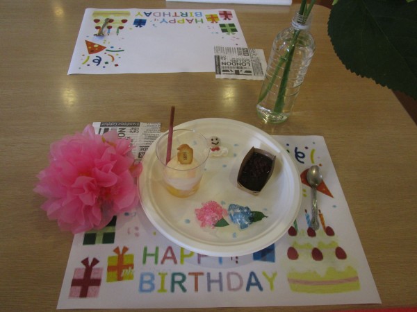 皆様とHappyBirthdayの歌を歌い、おいしいデザートでお祝いしました(*^-^*)