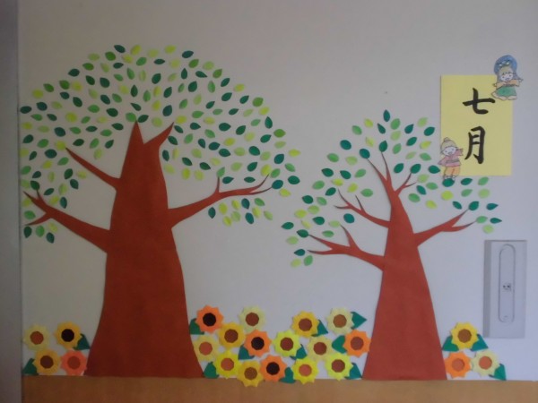 ということで、7月は壁面の制作物として「ひまわり畑」を作りました╰(*°▽°*)╯