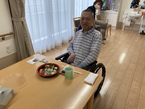 施設では、あまり食べれない特別に握り寿司が提供されました。