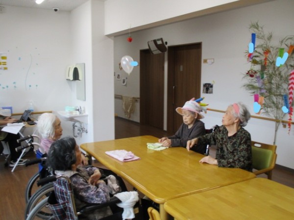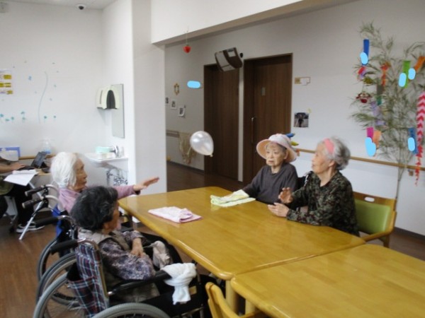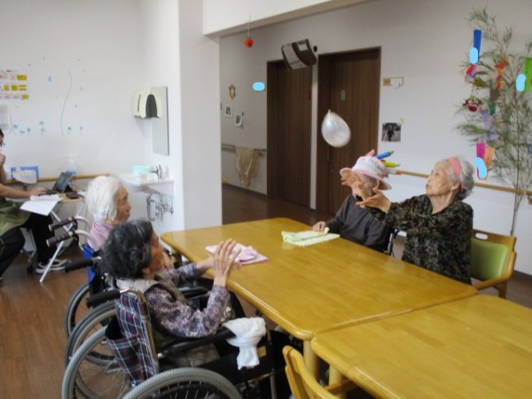 風船バレー遊びを行いました( ^ω^)・・・ 風船だから柔らかいから中々降りてこないね!! 思うようにいかないよ? 難しいわ(笑)
