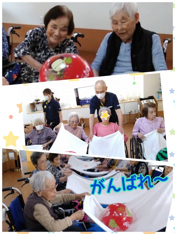 天の川に落とさないように、バスタオルでボールをゴールに運びます!