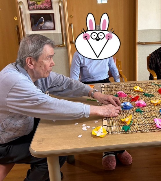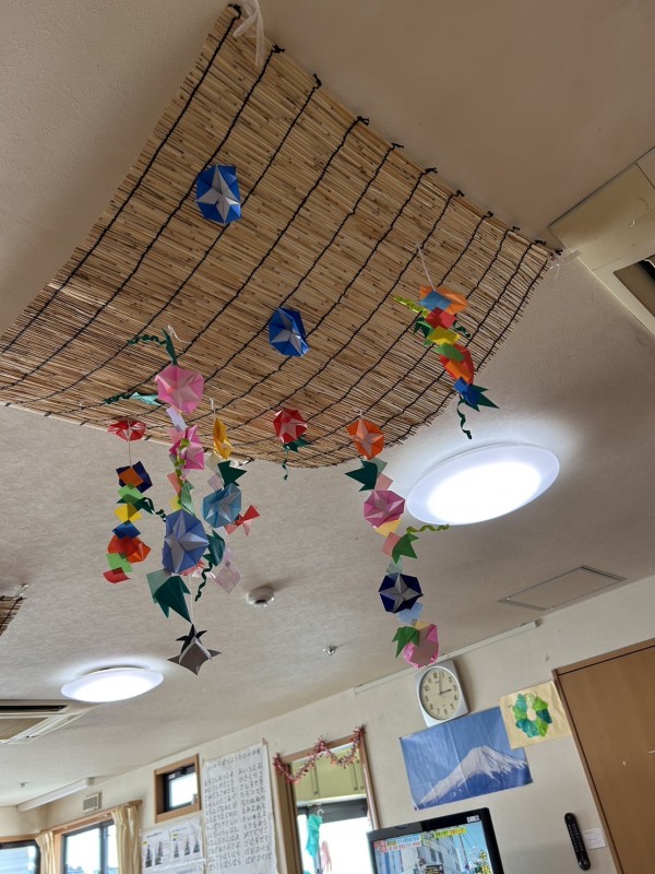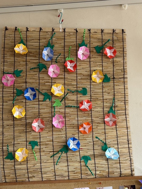 本日は、折り紙でアサガオを折り飾りつけしました♪