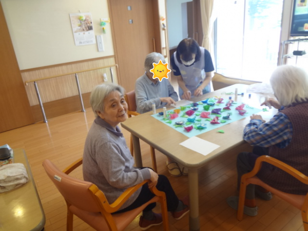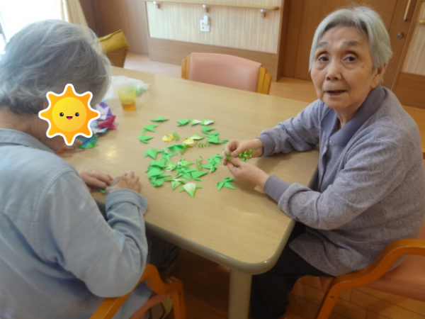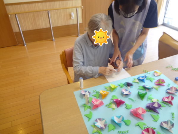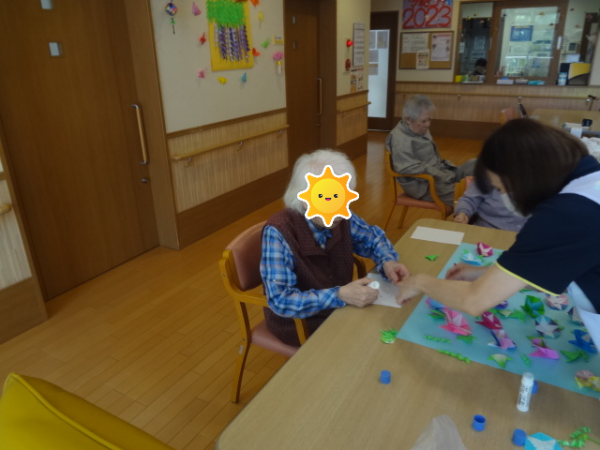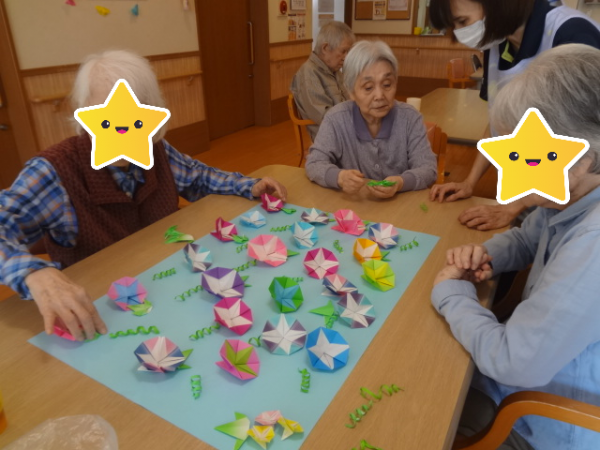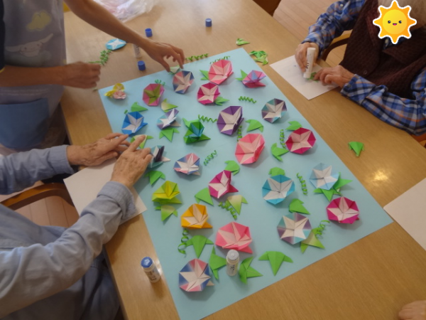 さて、、、今日のレクリエーションは「朝顔の貼り絵作り」です(^o^)丿