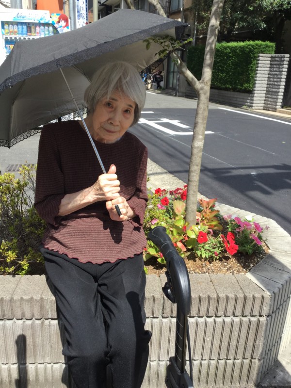 お散歩中のY様。日傘を手に少し休憩中♬ 美白を保つには紫外線対策ですね(^^♪ 見習わなきゃ♪