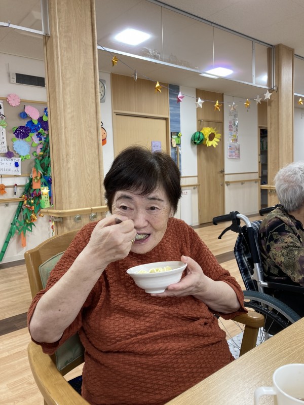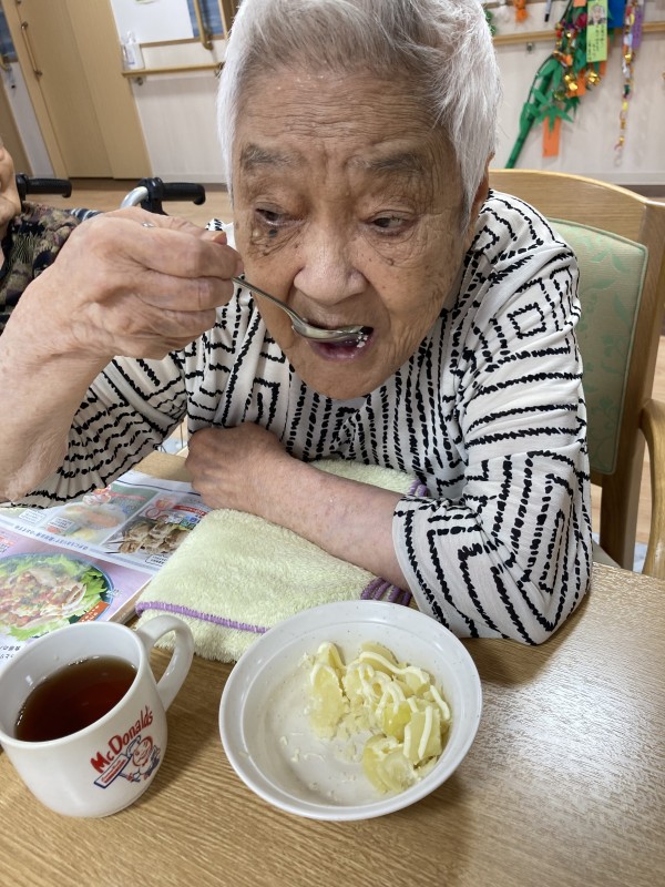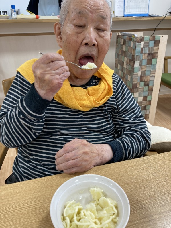 畑で収穫したじゃがいもを茹でてマヨネーズで頂きました。アツアツのホクホクで利用者様も大満足‼︎