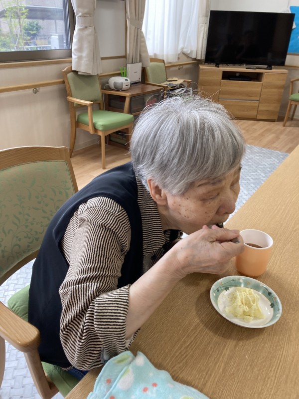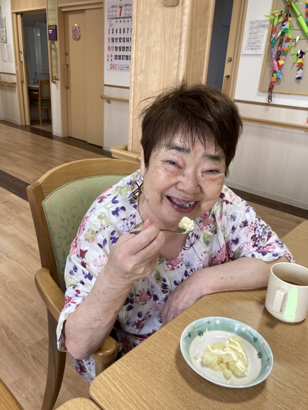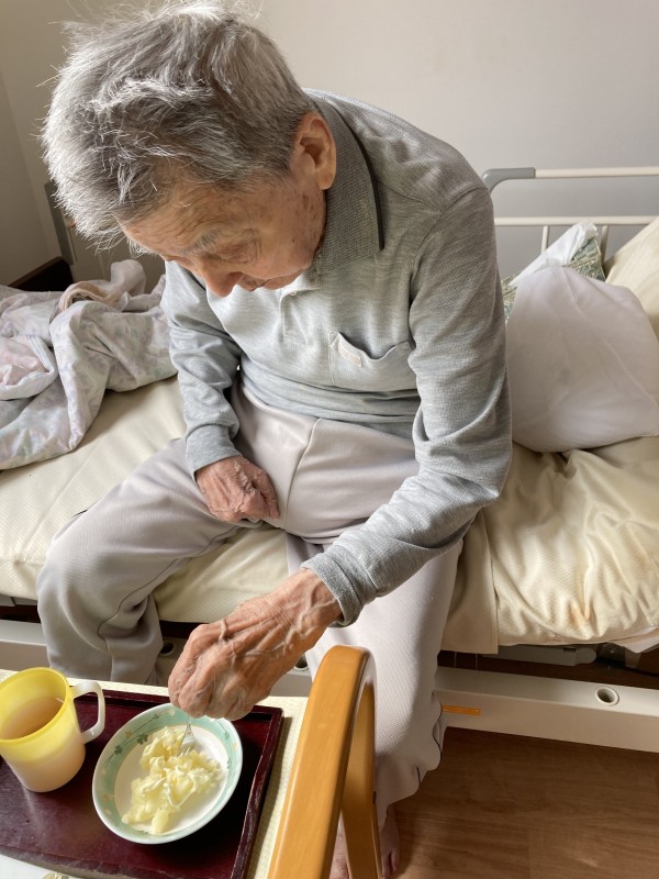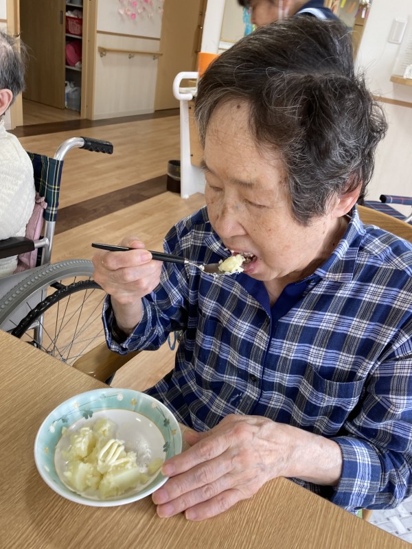 利用者様に合わせてこちらではマッシュポテト風にして見ました。マヨネーズをかけて「いただきま〜す♡」
