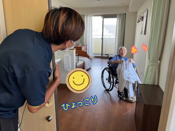 ひょっこり顔を出したケアスタッフに「わざわざ来てくれたの?」