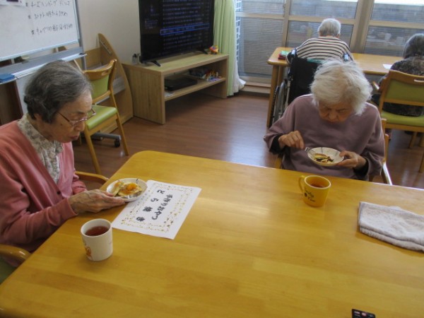 手作りどら焼きのおやつを召し上がられています( ^ω^)・・・ 今日のおやつは何かしら~? 美味しそうですね~?