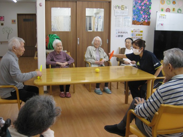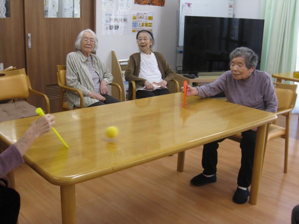 こんにちは! グループホームみんなの家・あきがせの介護ブログです! よろしくお願いいたします。 今日は室内でテーブルテニスで遊びました。そのご様子をお知らせいたします
