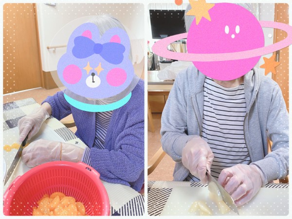 フルーツをカットするI様、K様。流石の手さばきです!