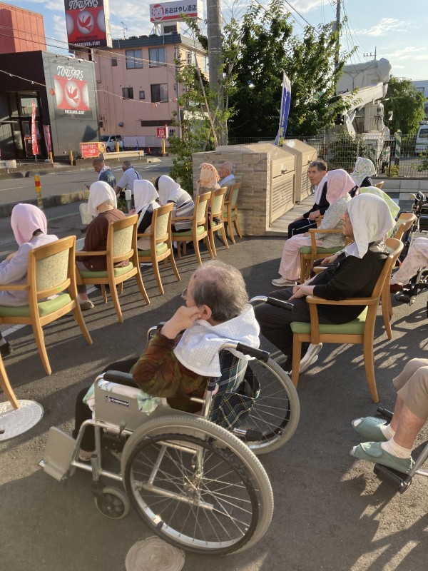 夕方にはホームの前をお神輿が通ると聞き、皆さん大喜びです♪夕食を早めに済ませてホームの門の前に集合〜!